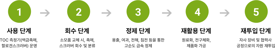 ※ 회수 및 정제 조건은 장비 종류 및 금속 함량에 따라 최적화
